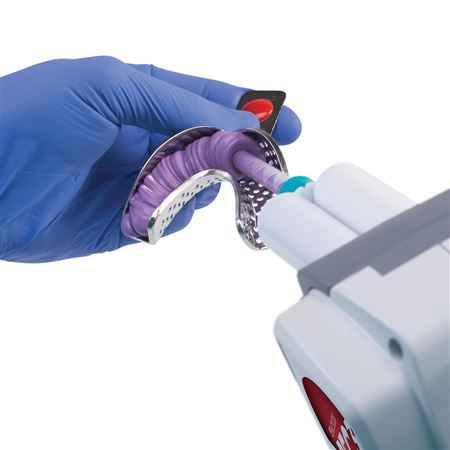 Making a great impression is now easier and faster with the Practicon BFC3 Powered Impression Gun. BFC3 (Better, Faster, Comfort, Control, Compatibility) dispenses any type of 1:1 / 2:1 automix material at the press of a button. Fills an entire full-arch tray in less than 10 seconds. No repetitive trigger squeezing to wear out your hand and throw off your aim. Works with standard 25ml, 50ml, and 75ml cartridges. Rechargeable battery dispenses up to sixty 50ml cartridges on a full charge.